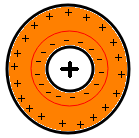 We will assume that inside a conductor, there is no net flow of charges, or the charges will move until the field is zero. Therefore, we can infer that the electric potential inside the conductor is constant throughout. This also means the electric field must be perpendicular to the surface of the conductor. Using Gauss’ Law, we can enclose any area strictly inside the conductor. Since $E=0$, we must conclude that $Q_{\text{enclosed}}=0$. Therefore, all charge of a conductor must be on it’s surface. This has interesting consequences for conductors with “holes” in them. To ensure that Gauss’ Law holds inside the red circle below, the charges must be arranged as such.