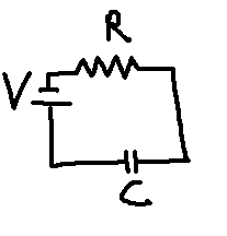 We have $\frac{V - V_C(t)}{R} = I = \frac{d}{dt} Q_C = C \cdot V’_C(t)$. Solving the differential equation $RC \cdot V_C’(t) + V_C(t) - V = 0$ gives us $V_c(t) = V(1-e^{-\frac{t}{RC}})$.